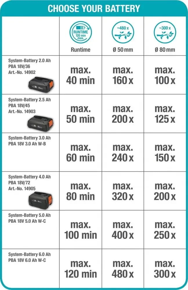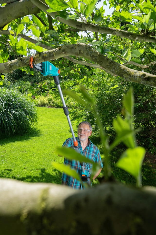 Akumulatorowa piła łańcuchowa Gardena TCS 20/18V P4A to uniwersalne i wygodne w użytkowaniu urządzenie, które sprawdzi się w każdym ogrodzie. Maszyna zasilana jest akumulatorem o napięciu 18V z serii Power For All. Jednostkę napędową piły stanowi silnik elektryczny, który może wprawić łańcuch w ruch z prędkością do 3,8 m/s, dzięki czemu korzystanie z pilarki jest przyjazne dla środowiska. Kąt nachylenia głowicy tnącej urządzenia możemy zmieniać. Sama głowica ma wąską konstrukcje, dzięki czemu możliwy jest dostęp do wybranych gałęzi nawet przy gęstej koronie drzewa. Możemy również wykonywać prace blisko podłoża. Obsługa urządzenia jest prosta i bezpieczna. Na końcu prowadnicy umiejscowiony został zderzak ochronny, który osłoni noże podczas prac przy ziemi, jak również pozwala na stabilizację urządzenia podczas pracy pilarki na wysokości. O aktualnym stanie naładowania baterii użytkownik jest informowany na bieżąco za pośrednictwem wyraźnego wskaźnika LED.