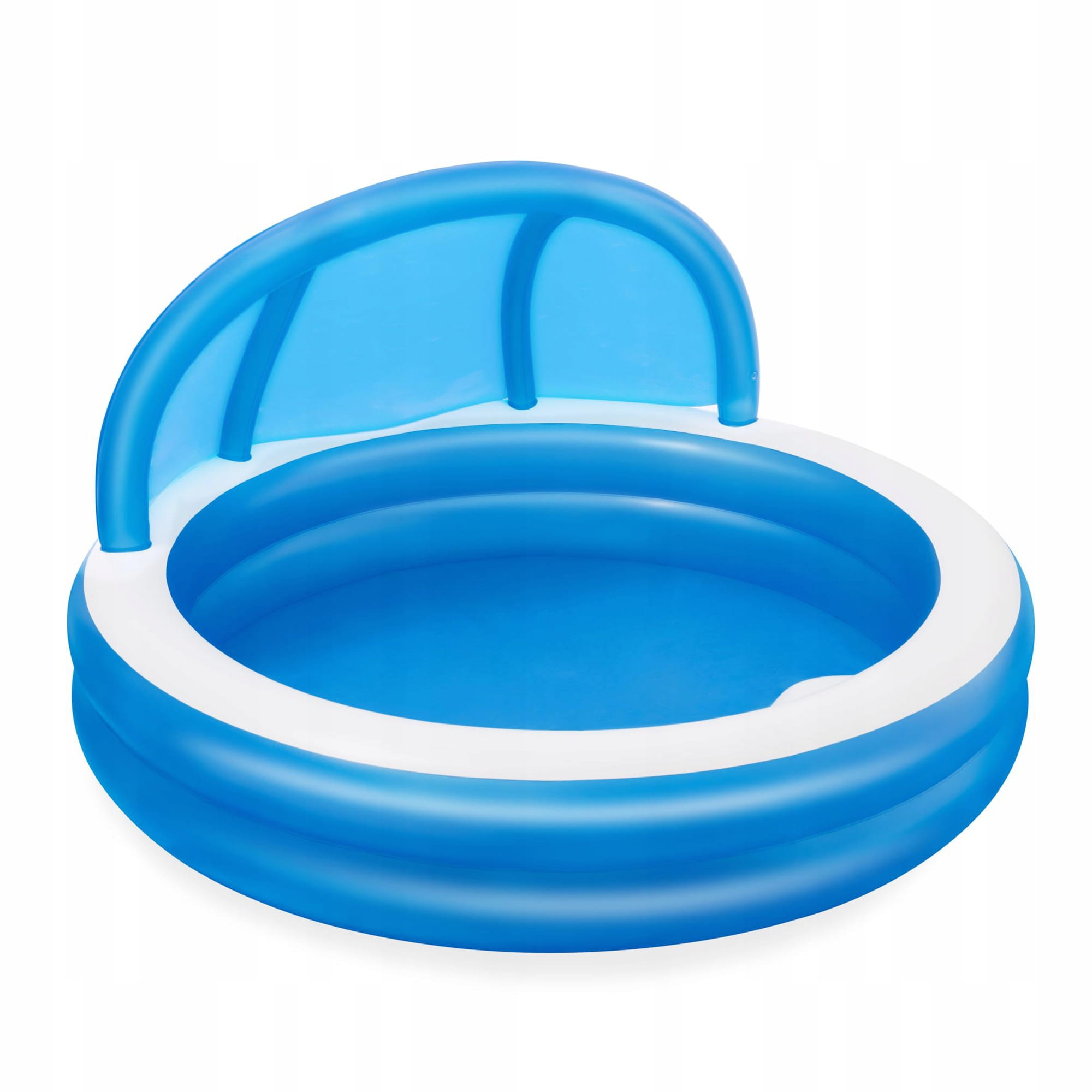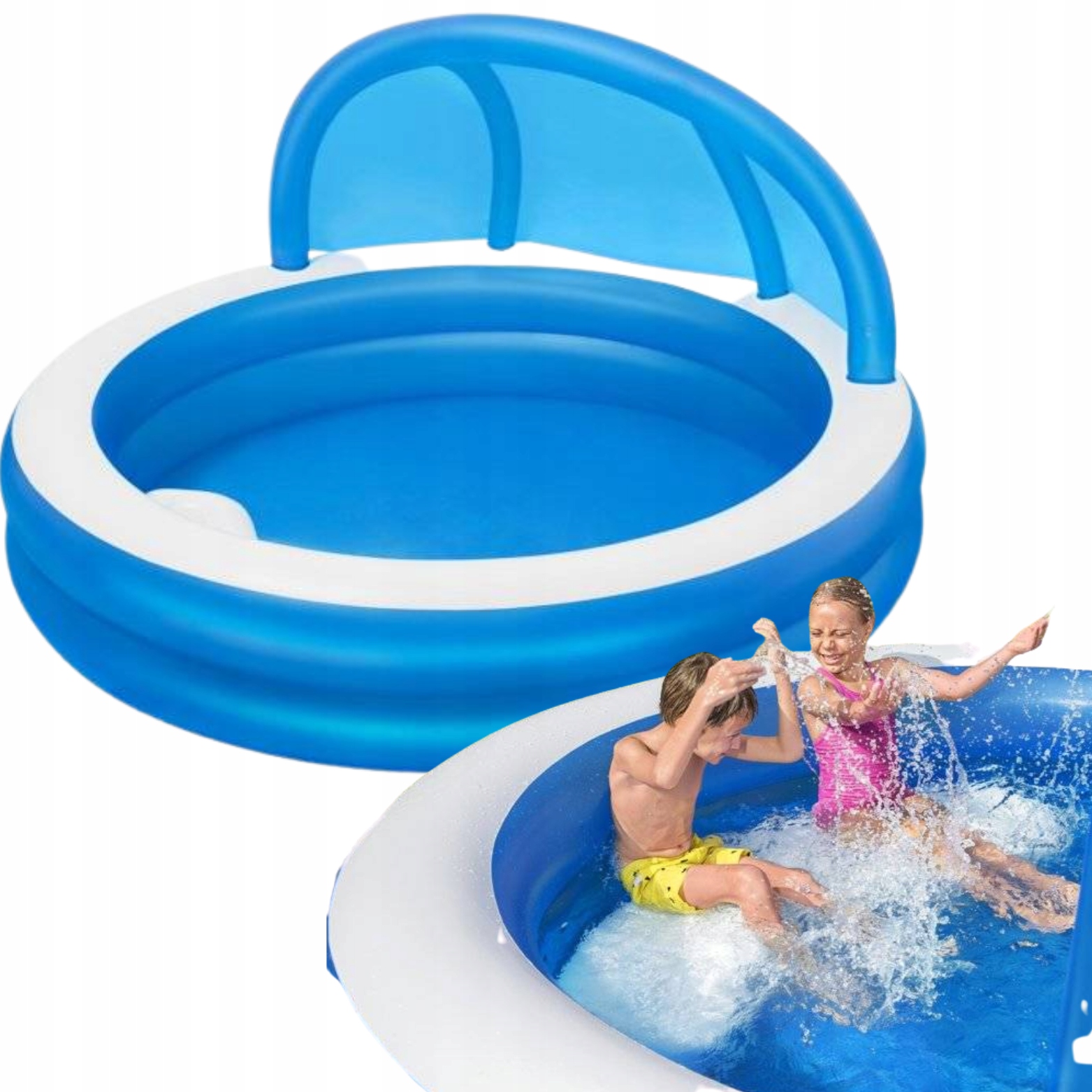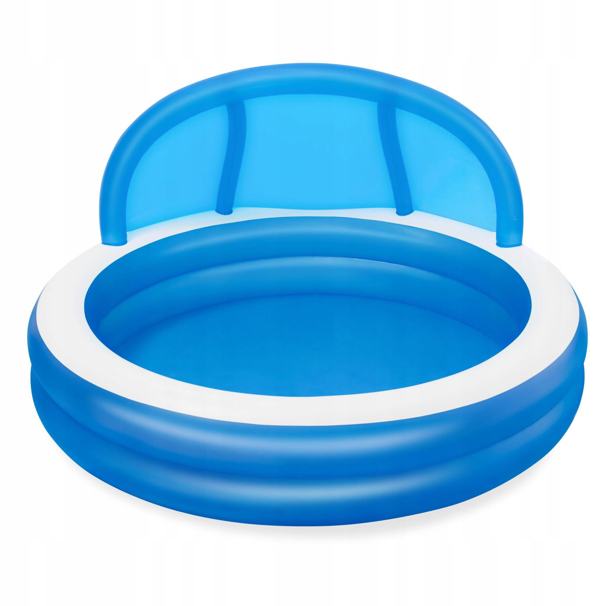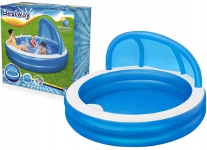 Duży, niezawodny basen dla całej rodziny, w którym będą mogły swobodnie pływać dzieci. Basen jest lekki, dlatego z łatwością można go przemieszczać tam, gdzie w danej porze dnia jest najcieplej. Posiada dwa dmuchane pierścienie i idealnie sprawdzi się podczas letniego wypoczynku.pozwoli zapewnić Twojemu dziecku ruch i zabawę w wodzie. Idealnie nadaje się dla dzieci w wieku od 6 lat. Jest łatwy do nadmuchania i opróżnienia dzięki czemu przechowywanie go nie będzie sprawiało problemów. Dołączony do basenu daszek skutecznie uchroni Ciebie i Twoich najbliższych przed promieniami słonecznymi. Dmuchane siedzisko wewnątrz basenu zapewni Ci wygodny odpoczynek.
