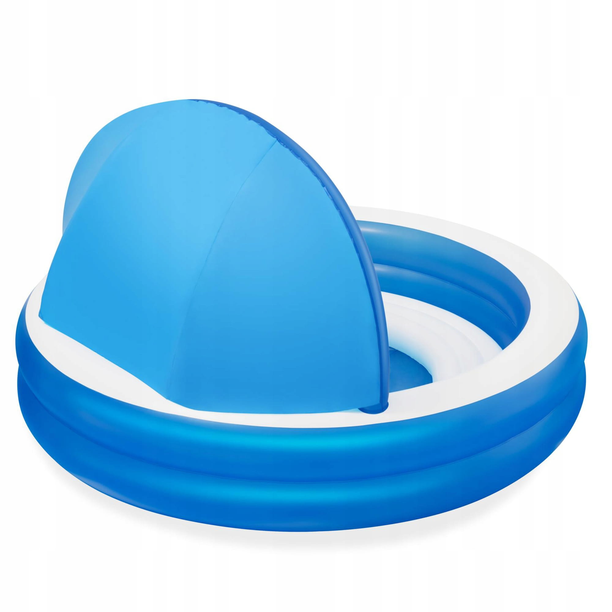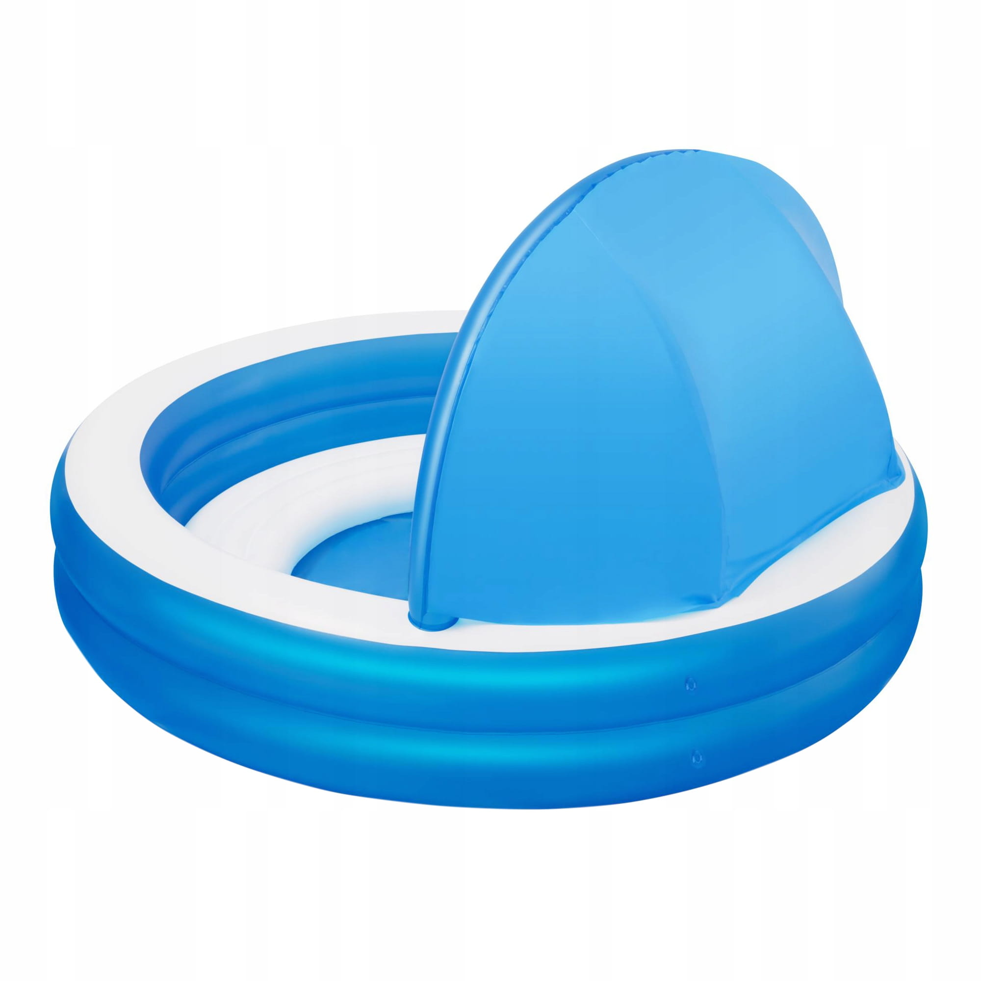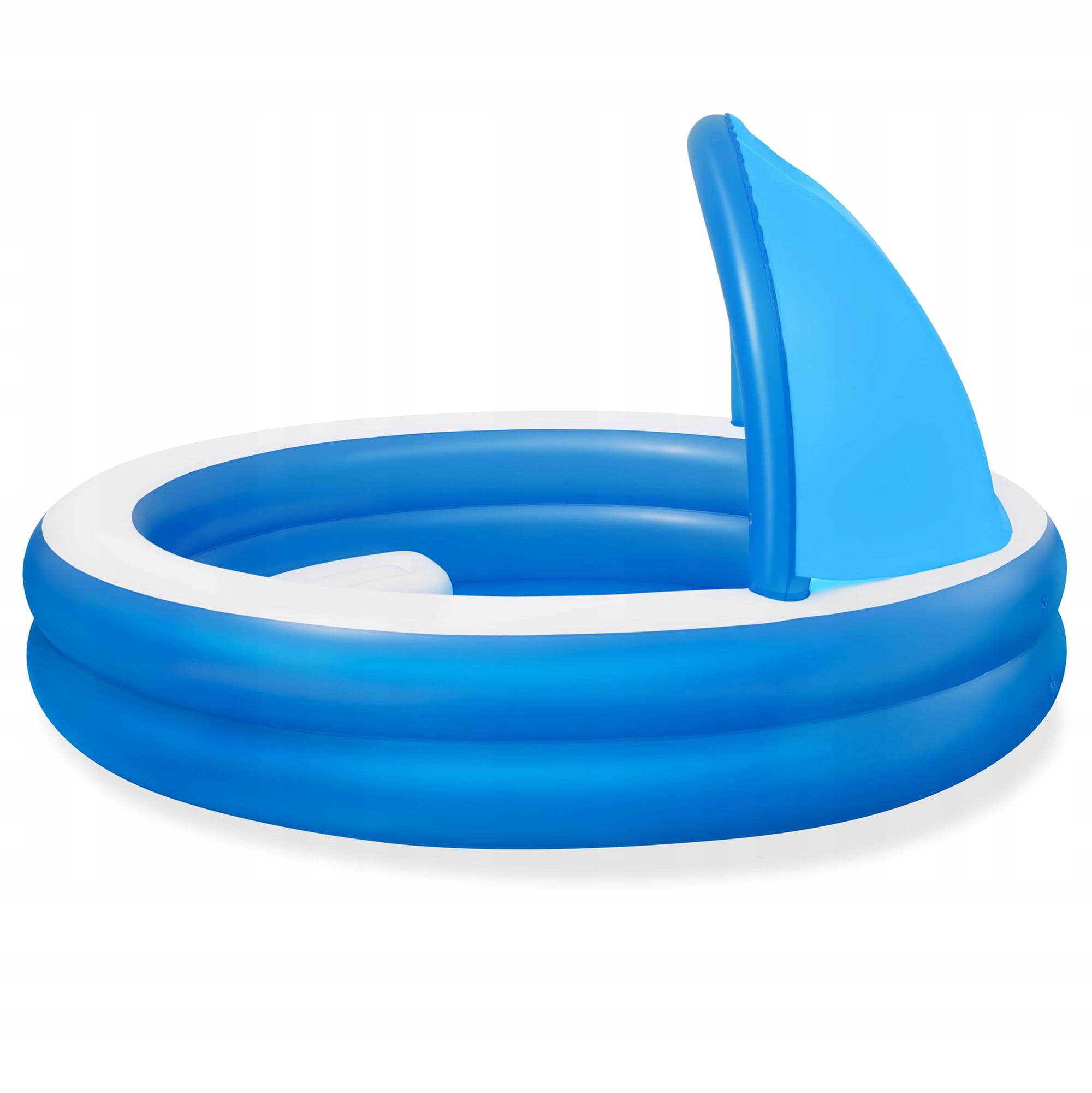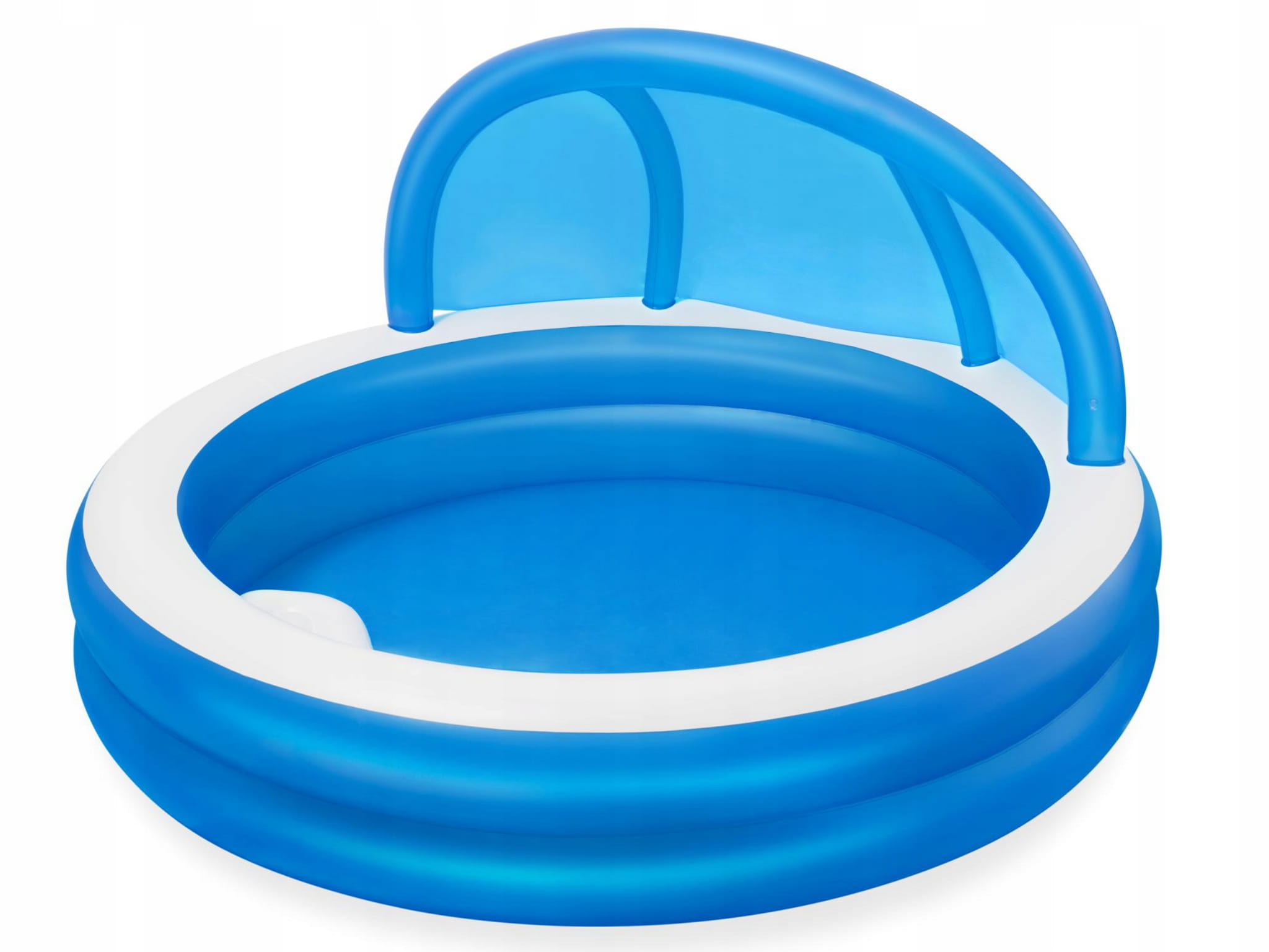 Duży, niezawodny basen dla całej rodziny, w którym będą mogły swobodnie pływać dzieci. Basen jest lekki, dlatego z łatwością można go przemieszczać tam, gdzie w danej porze dnia jest najcieplej. Posiada dwa dmuchane pierścienie i idealnie sprawdzi się podczas letniego wypoczynku.pozwoli zapewnić Twojemu dziecku ruch i zabawę w wodzie. Idealnie nadaje się dla dzieci w wieku od 6 lat. Jest łatwy do nadmuchania i opróżnienia dzięki czemu przechowywanie go nie będzie sprawiało problemów. Dołączony do basenu daszek skutecznie uchroni Ciebie i Twoich najbliższych przed promieniami słonecznymi. Dmuchane siedzisko wewnątrz basenu zapewni Ci wygodny odpoczynek.