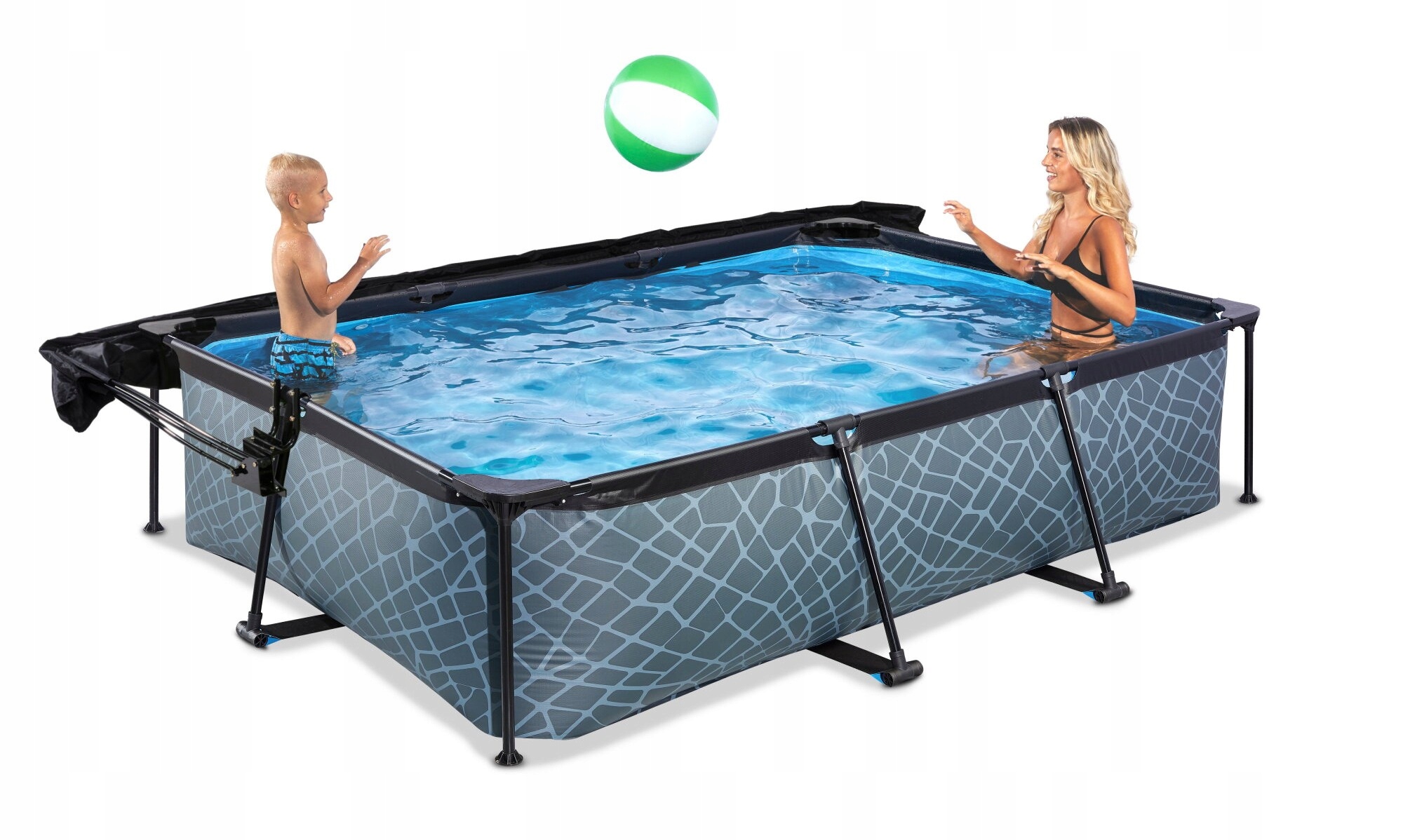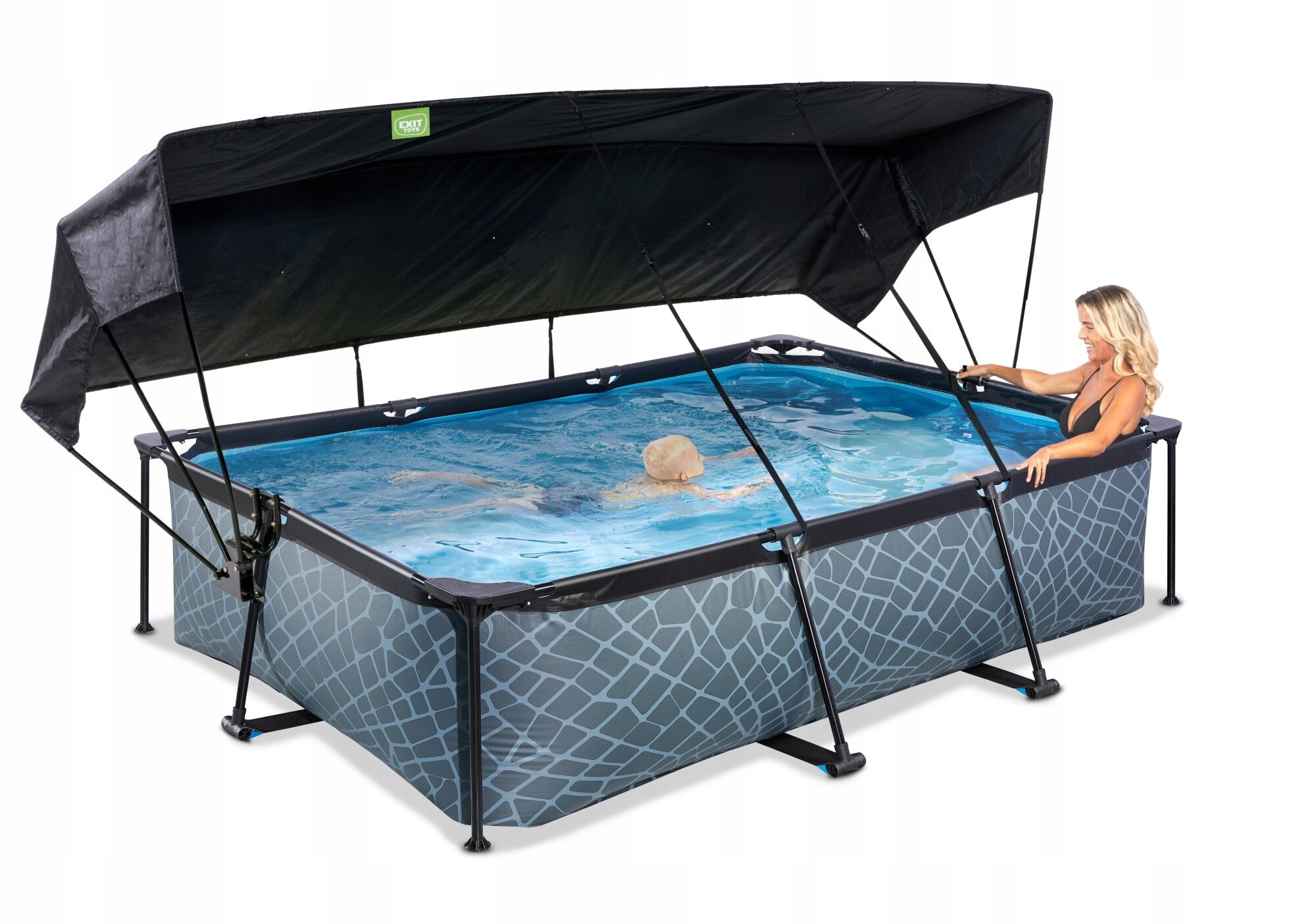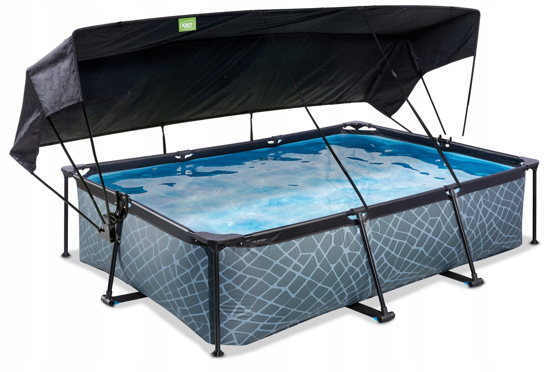 ✔️ Basen EXIT 220 x 150 x 65 cm to prostokątny basen w szaro-czarnej kolorystyce + Płachta zacieniająca do basenu