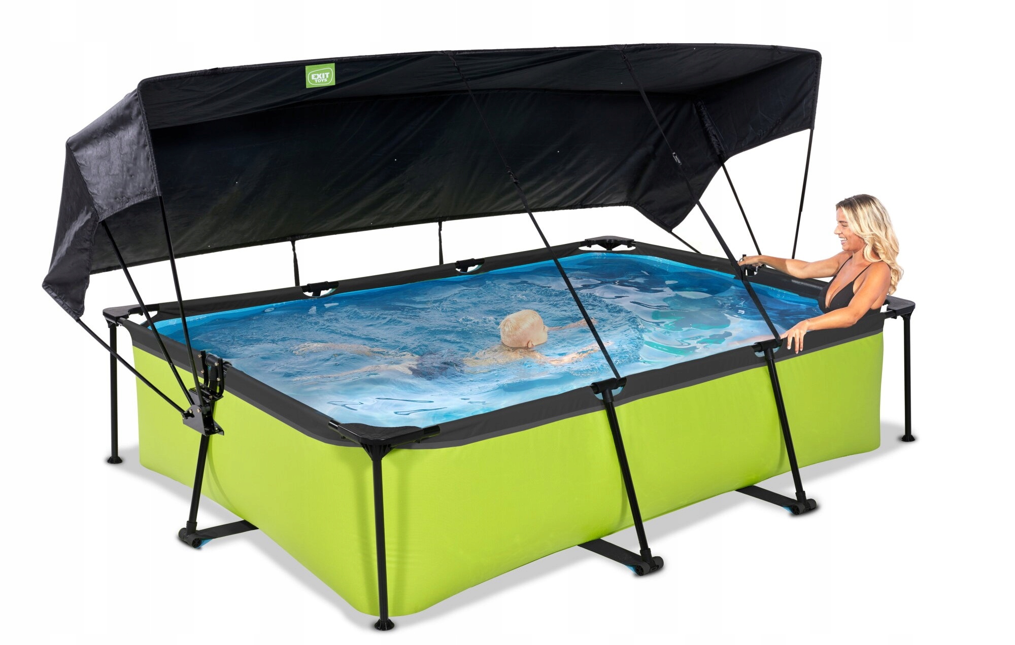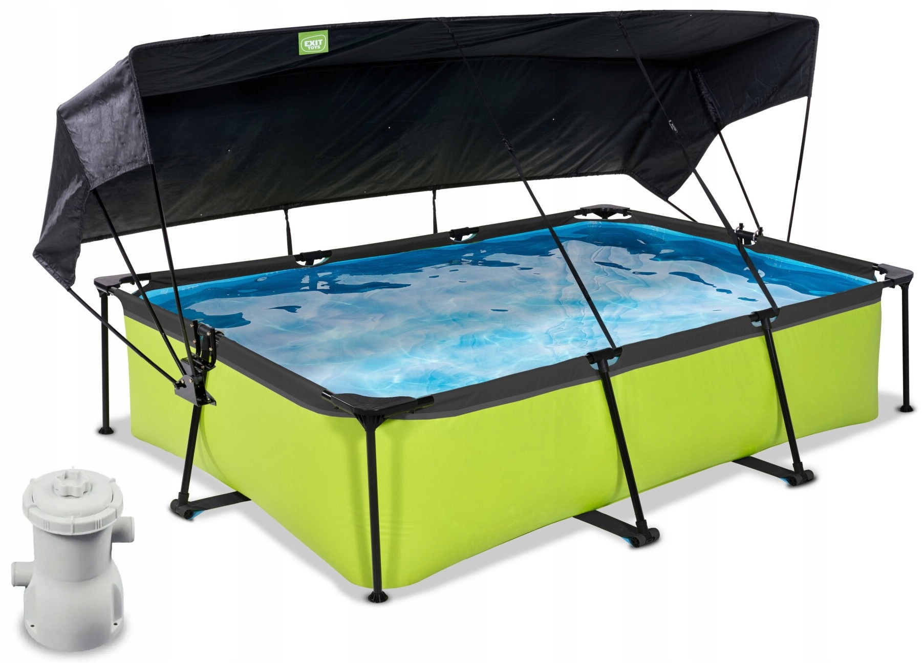 ✔️ Basen EXIT 220 x 150 x 65 cm to prostokątny basen w kolorze zielonym limonka + Płachta zacieniająca do basenu