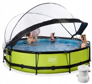 Basen ogrodowy Exit 360x76 cm z pompą filtrującą i zadaszeniem zielony