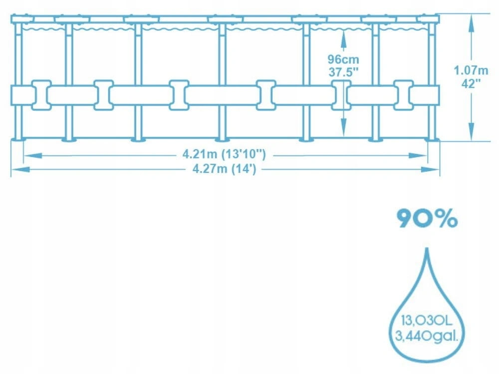 - Pojemność basenu 13,030L/3,440 gal.