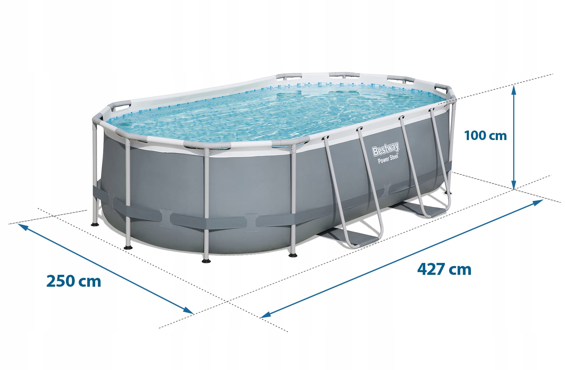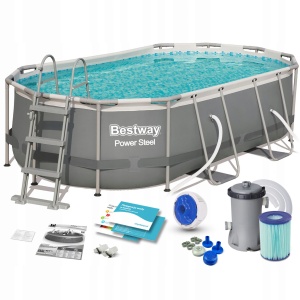 Basen stelażowy owalny Bestway 424 x 250 cm 56620 Zestaw z pompą drabinka
