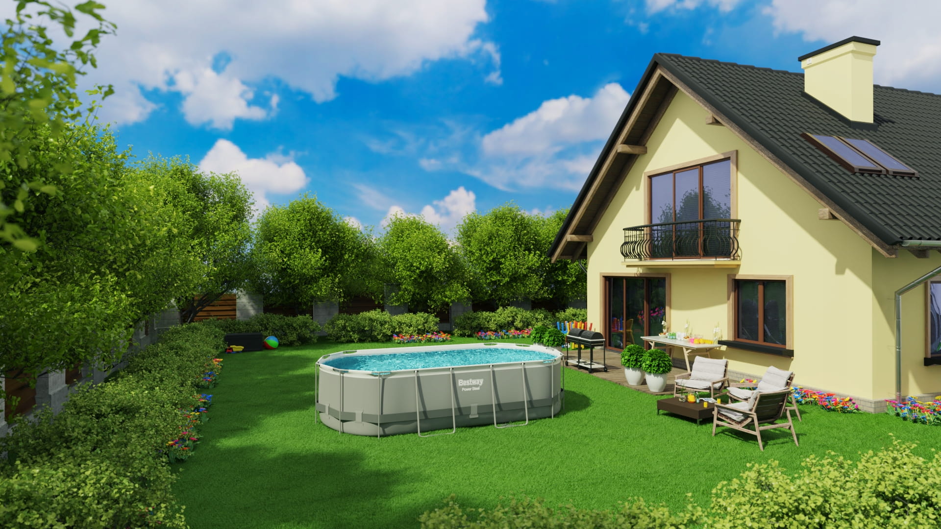 Ciesz się luksusem własnego basenu w ogrodzie! Produkt jest idealny dla rodziny marzącej o częstym korzystaniu z basenu, który nie wymaga czasochłonnego montażu i skomplikowanych czynności konserwacyjnych.
