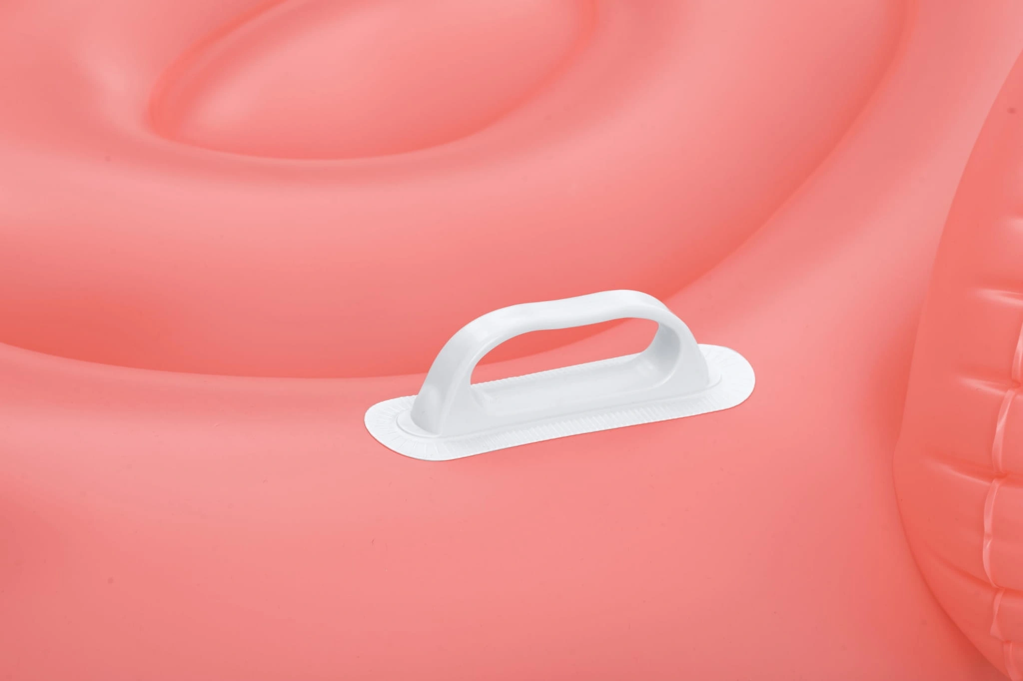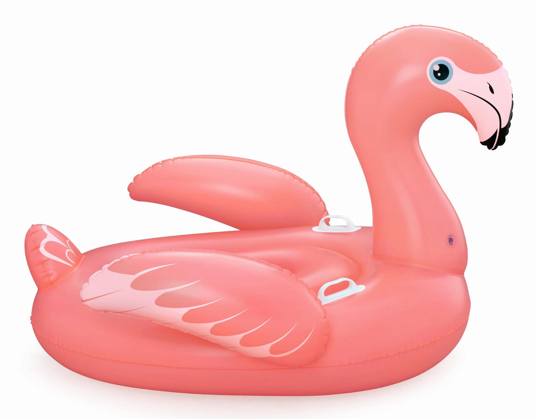 Materac do pływania dla dzieci w kształcie flaminga Bestway Fancy Flamingo 1.38 m x 1.07 mChluśnij w letnią zabawą dzięki materacowi do pływania Bestway® Fancy Flamingo™! Wszystkie dzieci z sąsiedztwa w wieku od 3 lat będą gromadzić się wokół tego zabawnego, pierzastego przyjaciela i po wejściu na pokład pobudzą wyobraźnię. Ponadto jest wyposażony w Color Shield™, warstwę ochronną, która zapobiega przenikaniu kolorów na skórę, gdy jest mokra, a jednocześnie utrzymuje flaminga żywego i różowego przez cały sezon. Dzięki wyjątkowo dużym rozmiarom i wytrzymałym uchwytom dzieci mogą cieszyć się płynną jazdą, z łatwością manewrując materacem po basenie. Wyposażony w 2 komory powietrzne do łatwego pompowania i spuszczania powietrza, przygotuj się na lato pełne zabawy i bez fanaberii dzięki materacowi Bestway Fancy Flamingo.