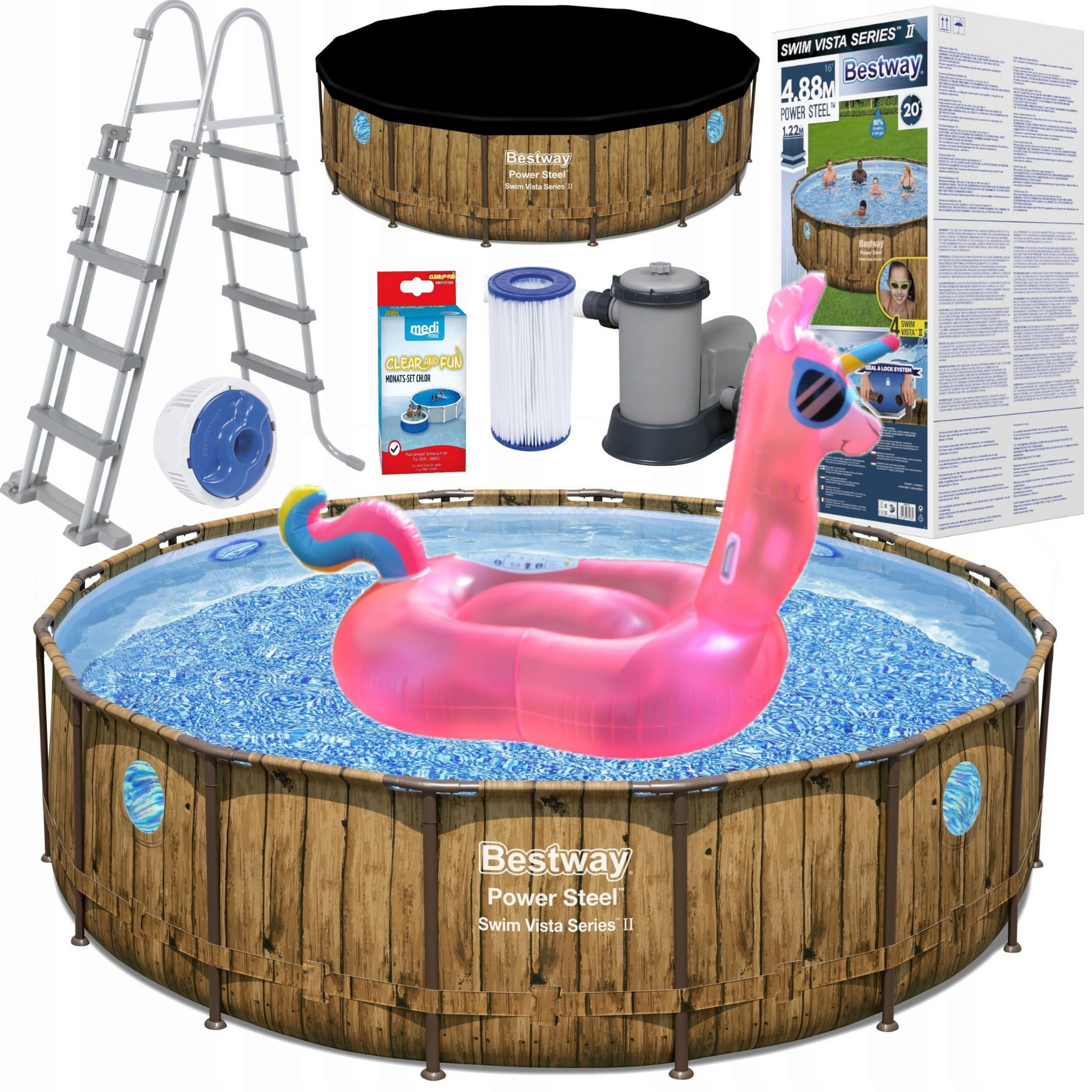 Bestway basen ogrodowy stelażowy POWER 56725 488x122cm 15w1 Lama 2m chlor