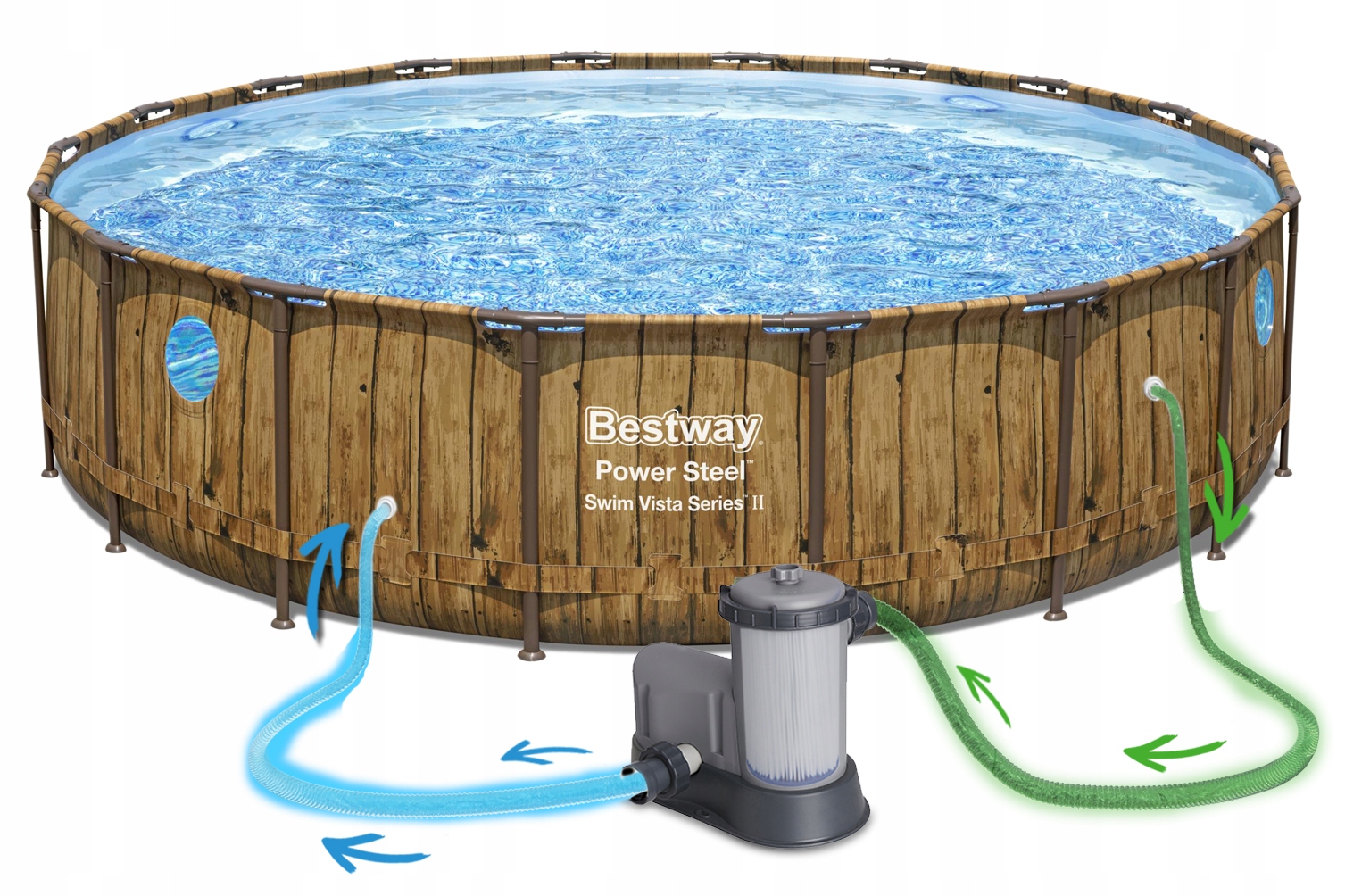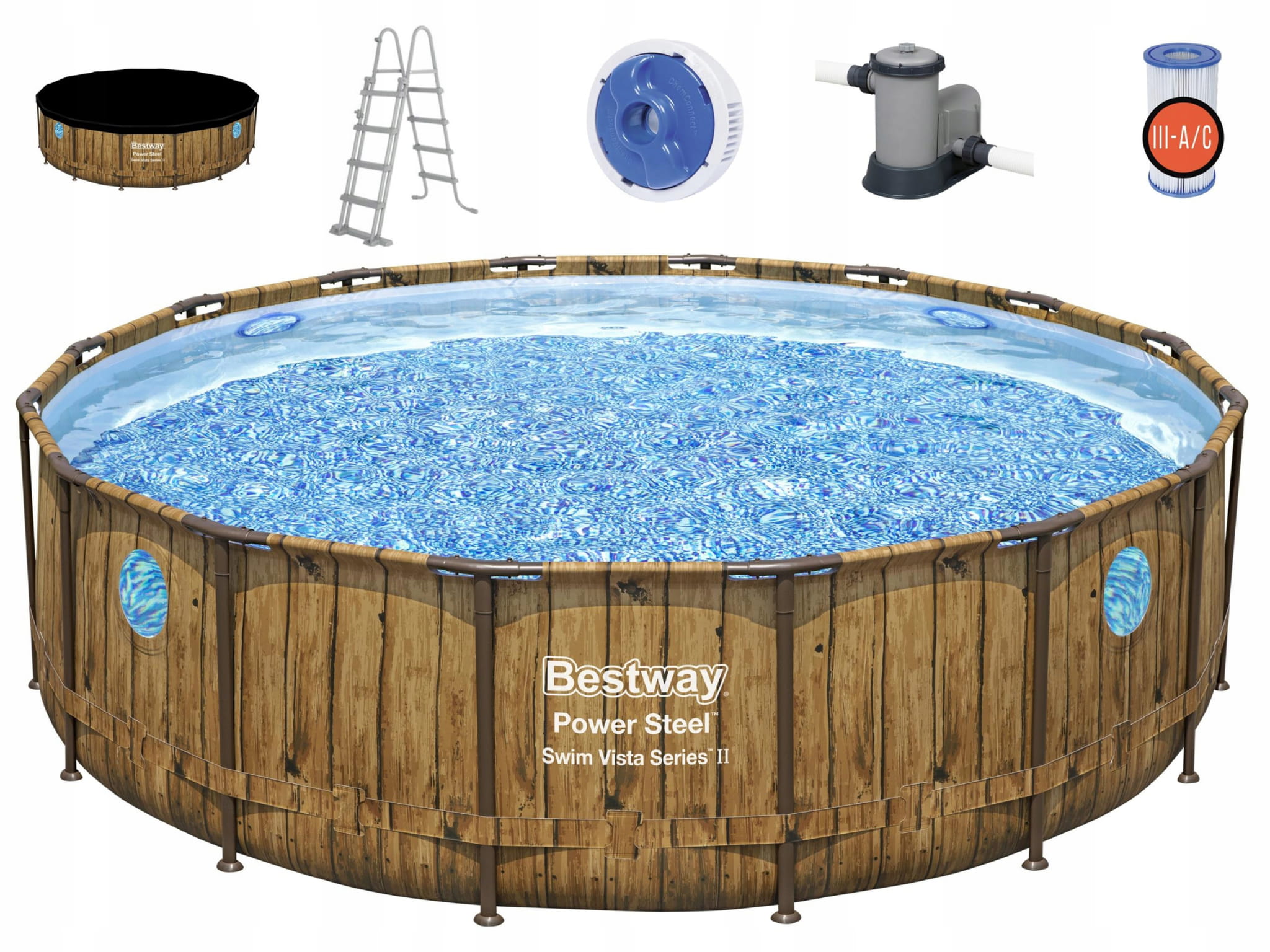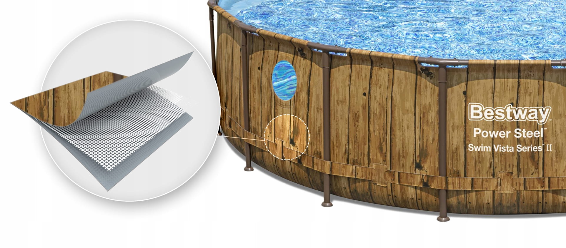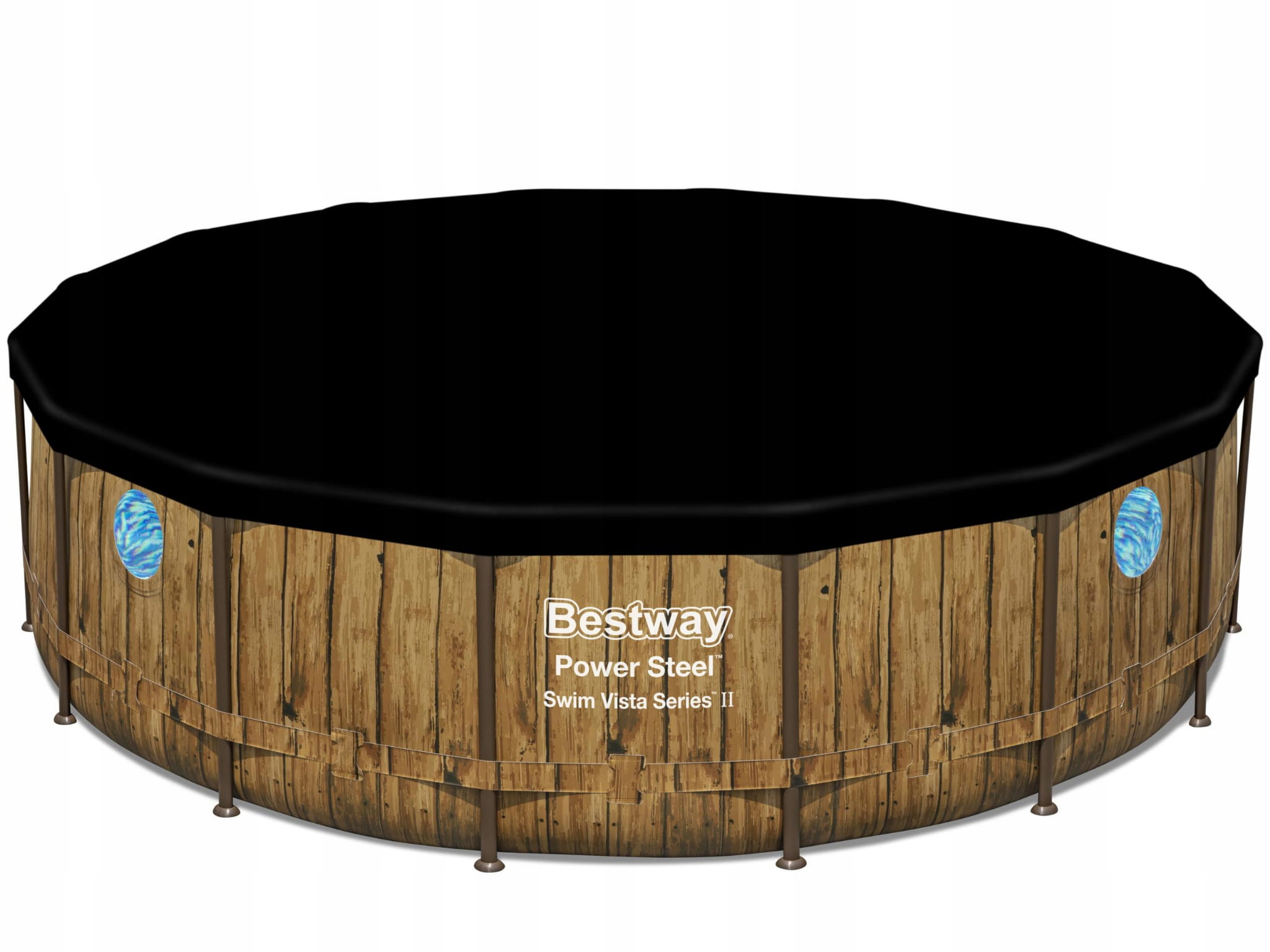 ✔️ Zestaw XXL Bestway basen ogrodowy stelażowy POWER STEEL 56725 kolor Imitacja Drewna