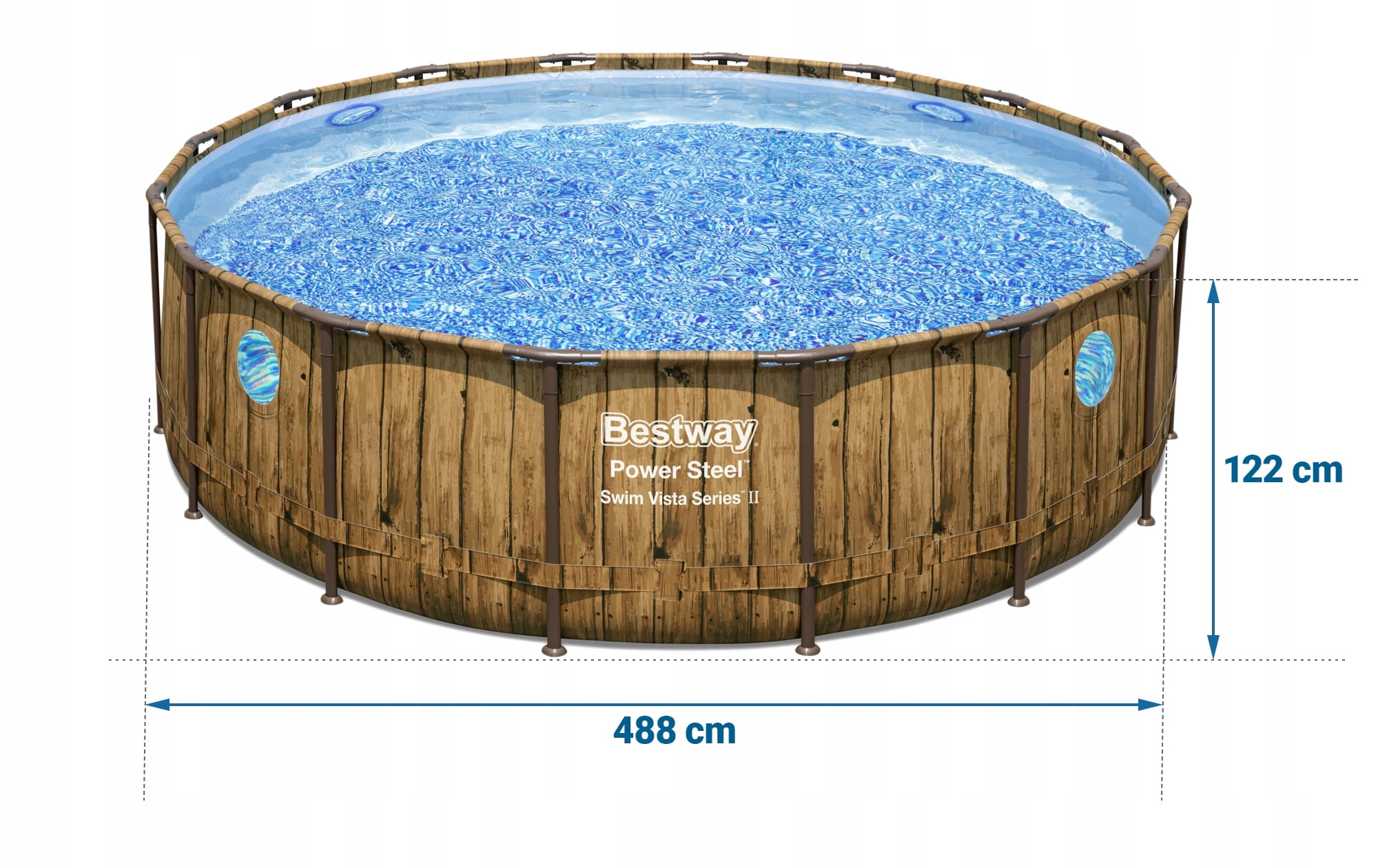 - Średnica 488 cm i głębokość 122 cm zapewniają wystarczająco dużo miejsca do pływania i pluskania się