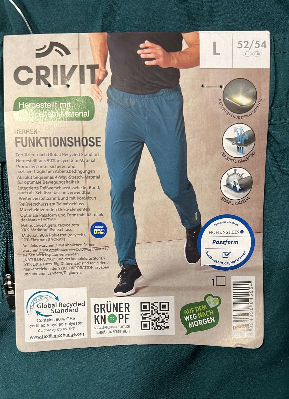 CRIVIT Męskie spodnie funkcjonalne do biegania L (52/54) kolor petrol