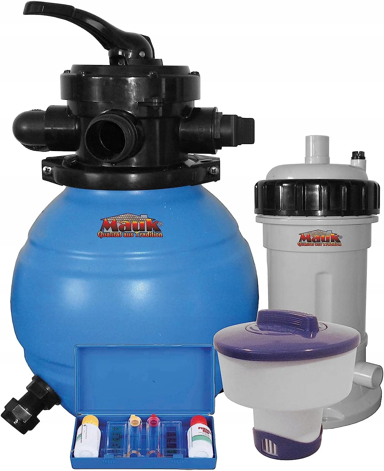 ✔️ Mauk 1601 filtr piaskowy i pompa 90 W z rozdzielaczem chloru i zestawem testowym,