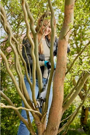Akumulatorowe nożyce do gałęzi HighCut 110/18V P4A – bez akumulatora od firmy Gardena pozwalają w prosty sposób ciąć gałęzie drzew i krzewów. Niski ciężar wynoszący zaledwie 1,9 kg sprawia, że nożyce wygodnie leżą w dłoniach w trakcie pracy. Umożliwiają przy tym swobodne dosięganie z ziemi gałęzi na wysokości do 2,5 m. Solidne wsparcie ze strony akumulatora POWER FOR ALL oznacza cięcie gałęzi bez większego wysiłku.