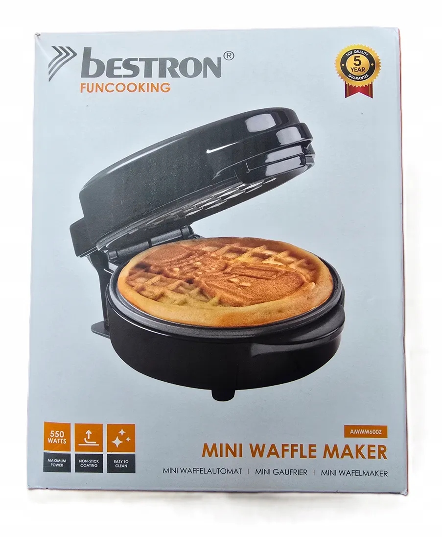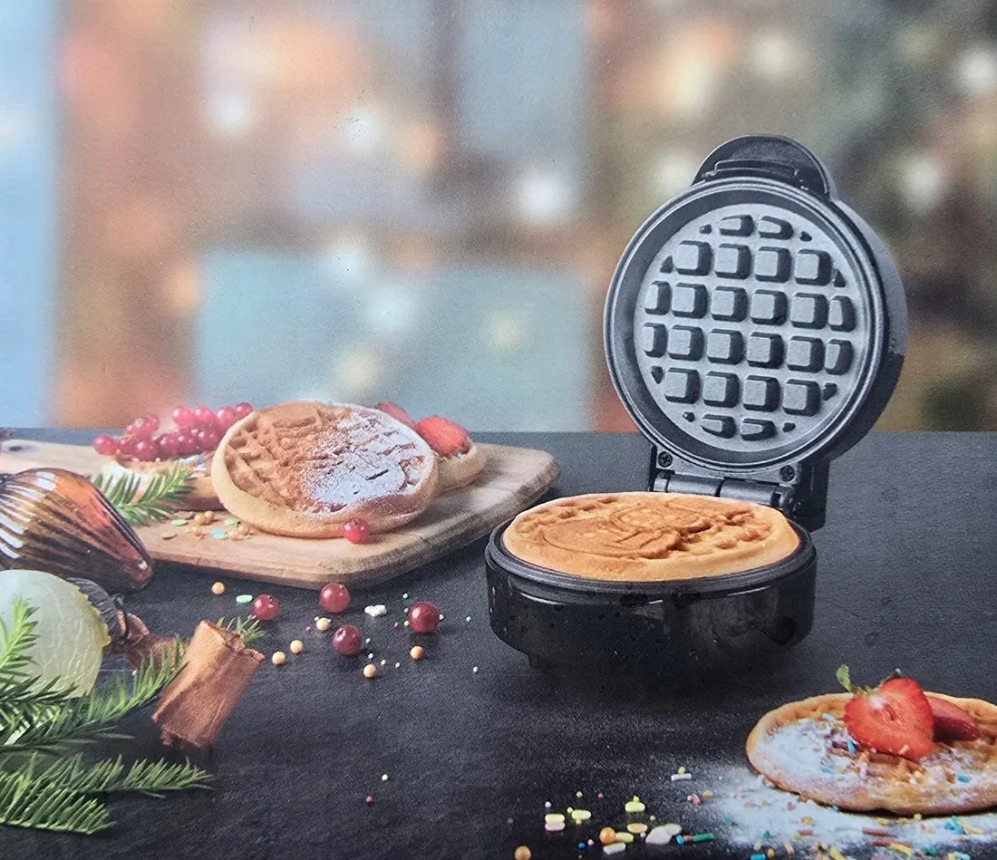 Ta kompaktowa i łatwa do czyszczenia mini gofrownica idealnie nadaje się do produkcji mini gofrów . Ma nieprzywierającą płytkę, dzięki czemu ciasto nie przykleja się podczas gotowania.