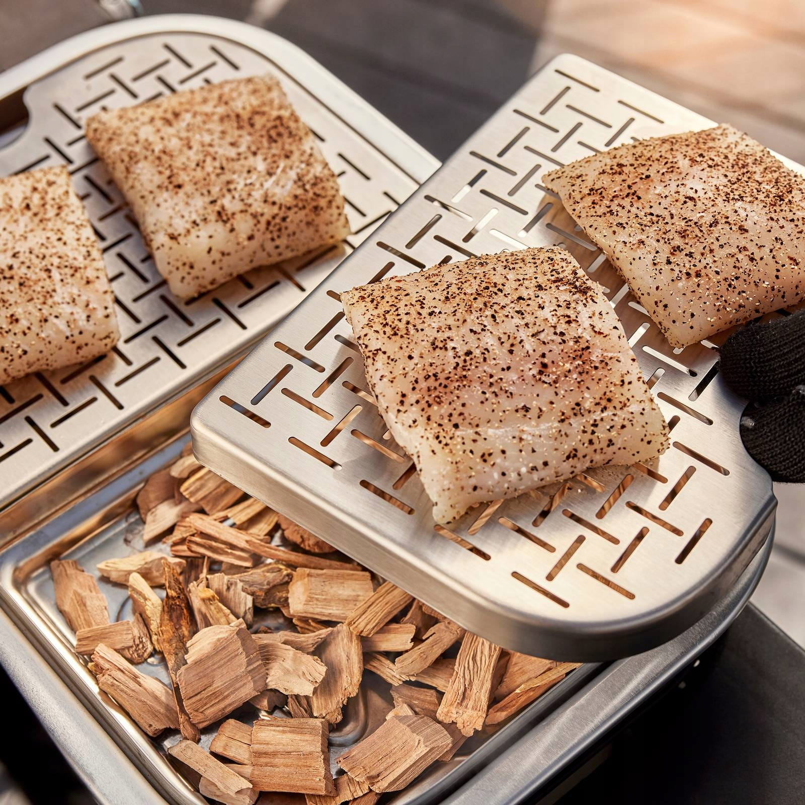 Ten wielofunkcyjny grill osiąga temperaturę ponad 315°C, dzięki czemu wielbiciele śladów wypieczenia mogą liczyć na wysoką jakość opiekania, a wędzenie stanowi gwarancję uzyskania bardziej intensywnego smaku grillowanych potraw, jakiego oczekują uczestnicy kolacji.