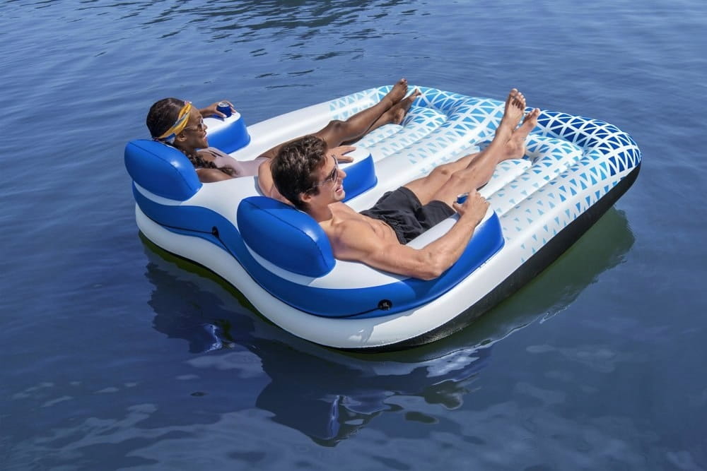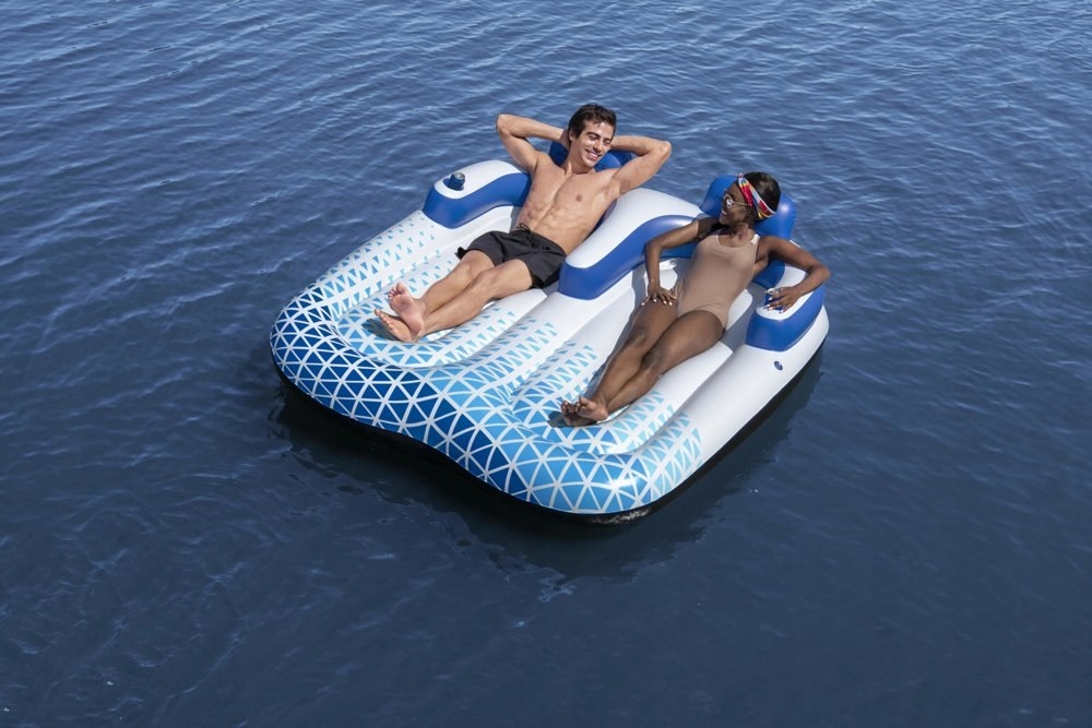 Bardzo wygodny i praktyczny materac przyda się wszystkim miłośnikom zarówno wody jak i spędzania czasu na plaży. Materac może służyć zarówno jako klasyczny materac do pływania jak i do opalania. Dodatkowym atutem, który zapewni Ci wygodę i relaks są podłokietniki i dmuchane oparcie. Klasyczny niebiesko biały kolor pewnością przypadnie Ci do gustu. Materac zawiera również otwór na napój dzięki czemu nie będziesz musiał wychodzić z wody aby móc napić się swojego ulubionego napoju. Przeznaczony jest do użytku dwuosobowego co pozwoli Ci na spędzenie czasu wraz ze swoimi najbliższymi.