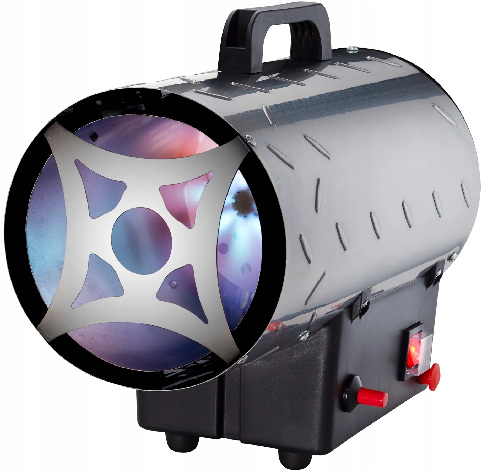 - Nagrzewnica posiada zapłon manualny wyposażony w zapalnik piezoelektryczny. Urządzenie oprócz zasilania gazem musi być podłączona do prądu (230V), gdyż wyposażona jest w wentylator napędzany silnikiem elektrycznym, który zapewnia przepływ i cyrkulacje powietrza. Gwarantuje to wysoką wydajność przy niewielkim zużyciu gazu. Zimne powietrze zasysane jest do urządzenia przez wentylator i kierowane w stronę wylotu nagrzewnicy, gdzie ogrzewane jest przez płomień. Ciepłe powietrze wylatuje przodem.
