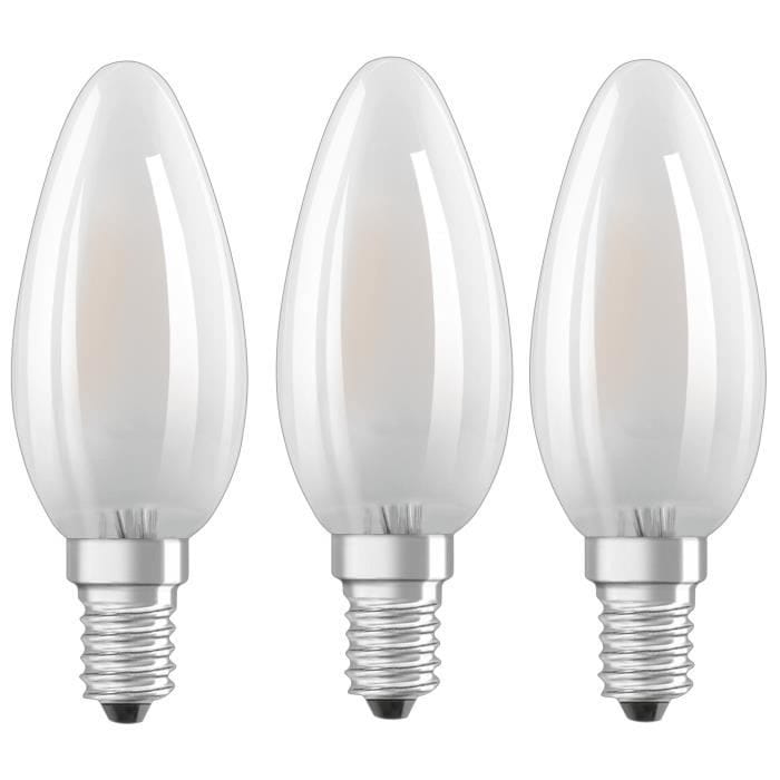 Zestaw 3x Żarówka LED FILAMENT marki OSRAM to nowoczesne i energooszczędne źródło światła o mocy 4W (odpowiednik 40W) z małym trzonkiem (gwintem) E14, dzięki czemu wymiana żarówki jest bardzo prosta. Żarówka w kształcie świeczki o mlecznym kloszu emituje ciepłą barwę światła 2700K, zaś jej strumień świetlny wynosi 470lm.