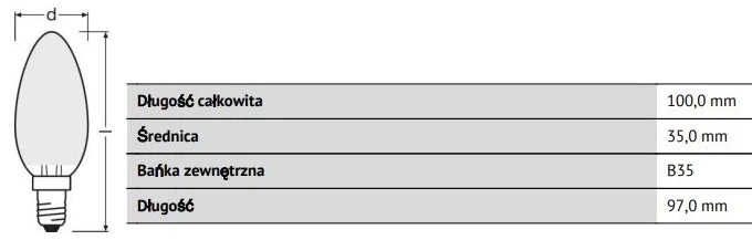 - Konstrukcja, wymiary i strumień świetlny porównywalne z tradycyjną żarówką