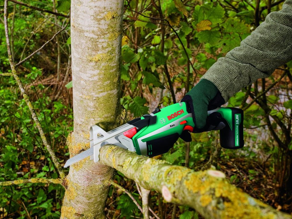- Wystarczy nacisnąć przycisk, aby ciąć gałęzie o grubości do 80 mm za pomocą precyzyjnego szwajcarskiego brzeszczotu