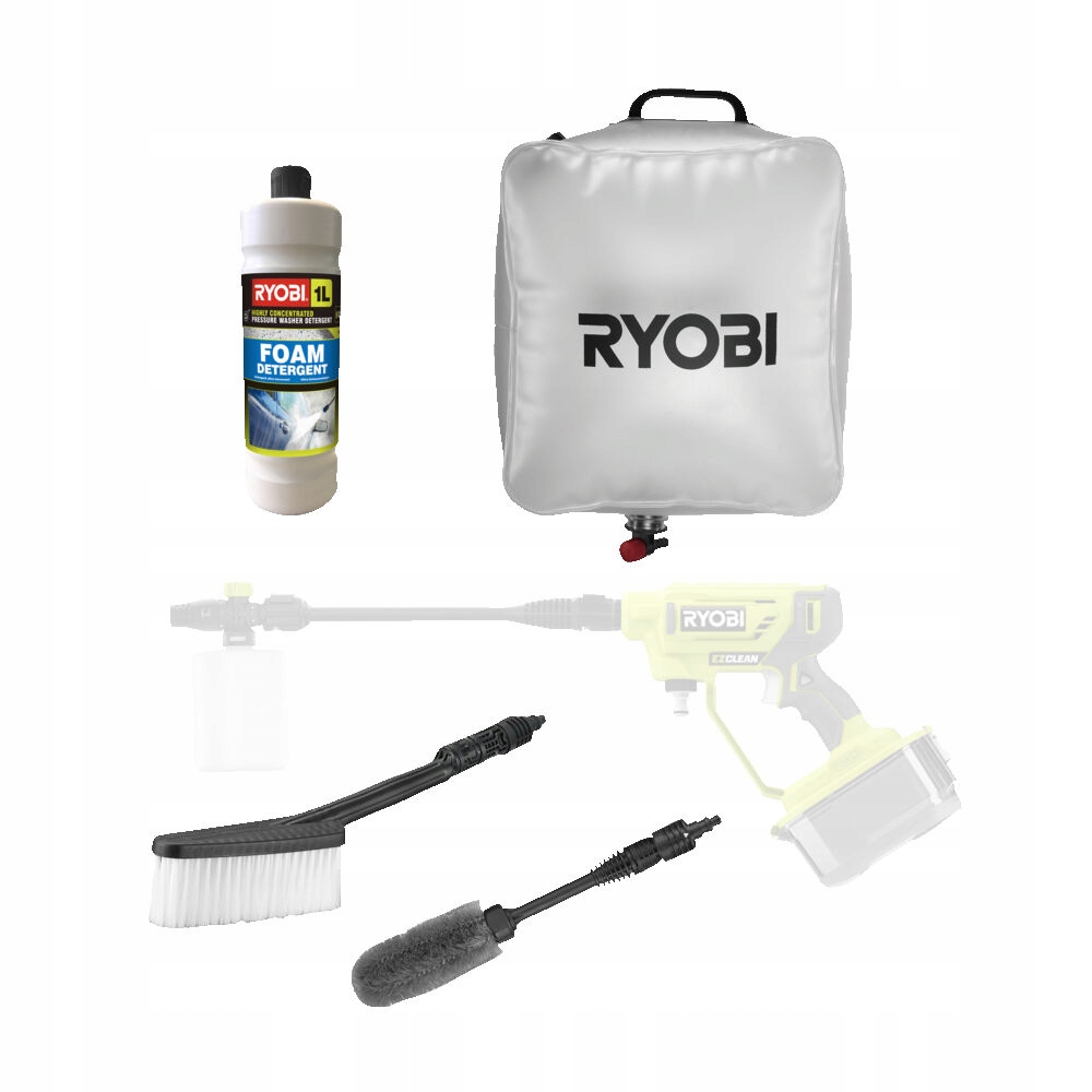 - 20-litrowy zbiornik na wodę: Umożliwia mobilne czyszczenie poprzez bezpośrednie pobieranie wody ze zbiornika Ryobi, co pozwala na pracę w dowolnym miejscu, niezależnie od dostępu do bieżącej wody.