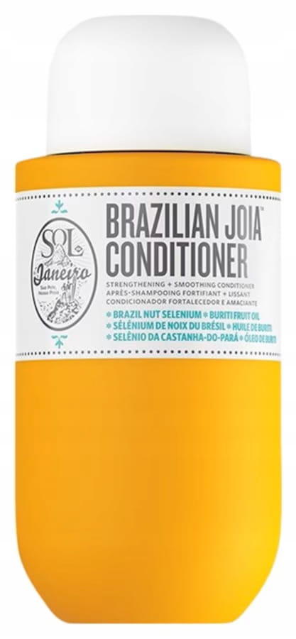 Brazilian Joia – odżywka wygładzająco-wzmacniająca od Sol de Janeiro to wyjątkowa formuła stworzona z myślą o intensywnej pielęgnacji włosów. Wzbogacona roślinną keratyną i naturalnym selenem z orzechów brazylijskich, wspiera odbudowę i wygładzenie pasm. Działa najlepiej w duecie z szamponem z tej samej linii. Po zastosowaniu włosy zyskują zdrowy połysk, stają się miękkie i pachną kuszącymi nutami karmelu, wanilii i orzechów, charakterystycznymi dla zapachu Cheirosa '62.