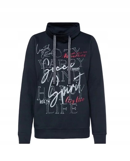 Soccx Bluza damska z nadrukiem brokatowym kolor czarny rozmiar XXL