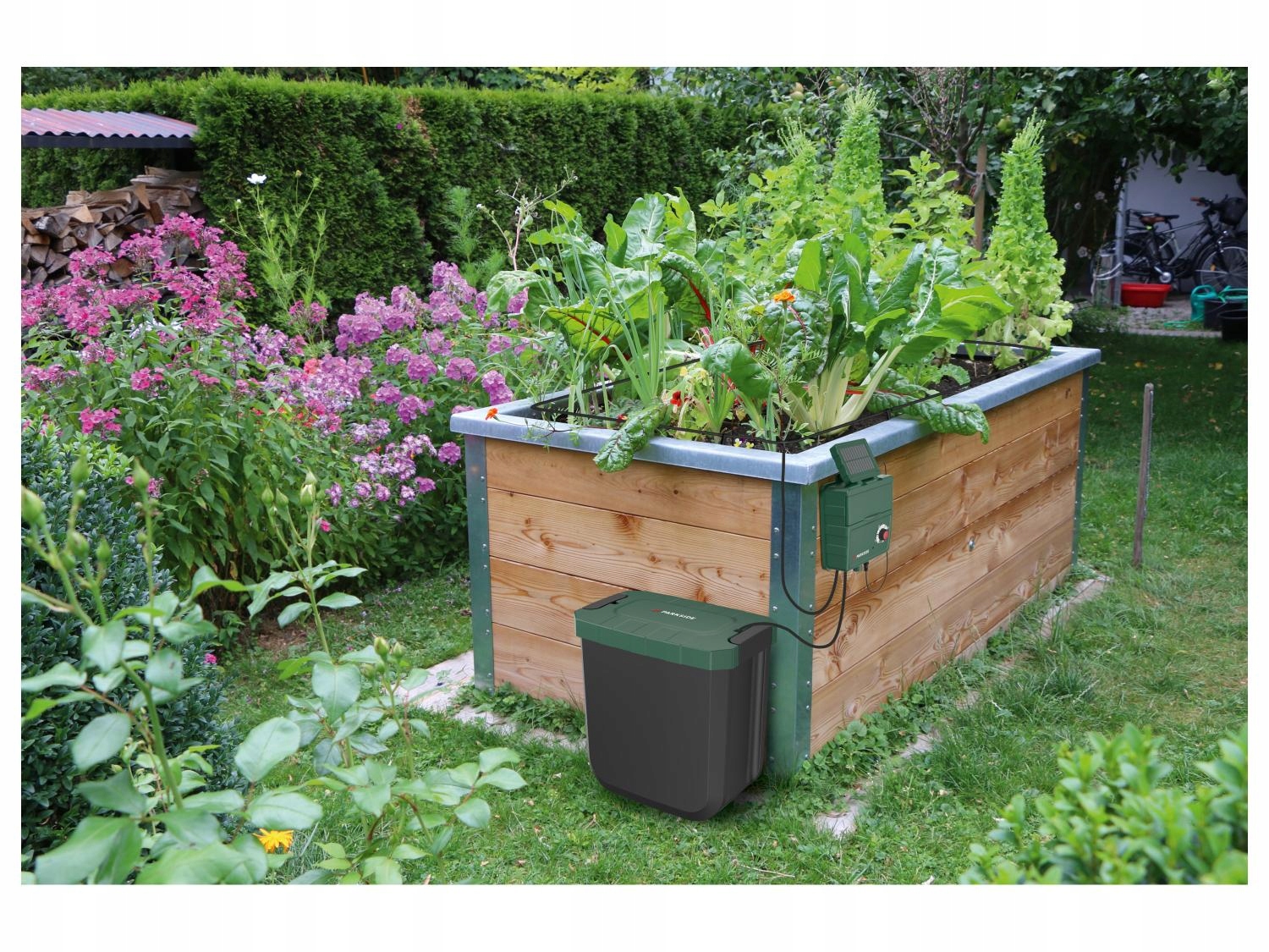 - Pojemnik na wodę z pokrywą zapobiega parowaniu dostarczanej wody do nawadniania, np. deszczówki