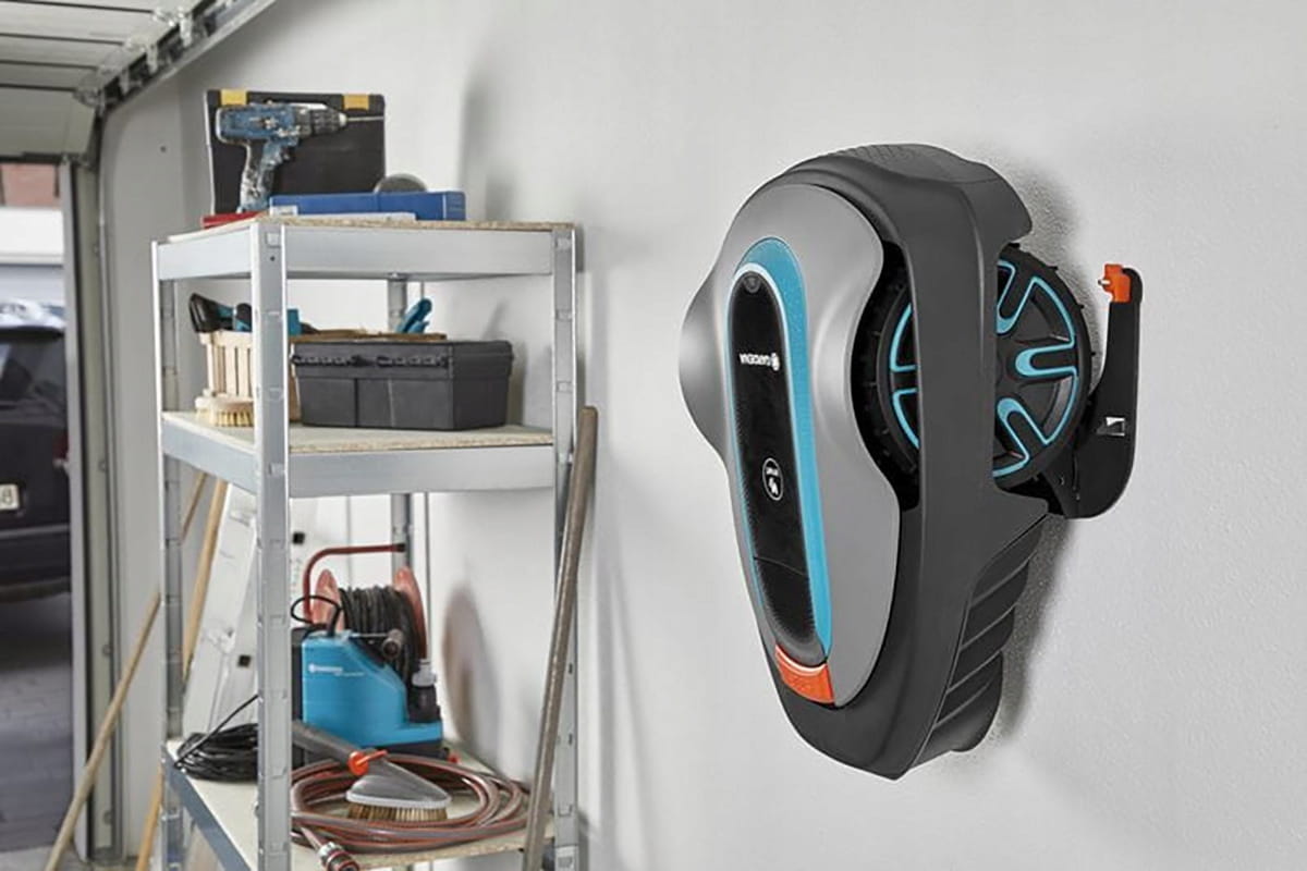 Oszczędny system przechowywania robotów koszących SILENO minimo, (smart) SILENO city oraz (smart) SILENO life. Jeżeli robot koszący nie jest używany w sezonie zimowym, uchwyt naścienny od GARDENA umożliwia przechowanie go w garażu czy piwnicy tak, żeby zajmował minimum miejsca i był chroniony przed wilgocią i mrozem. Wytrzymały metalowy uchwyt zmieści nie tylko kosiarkę, ale także stację ładującą.