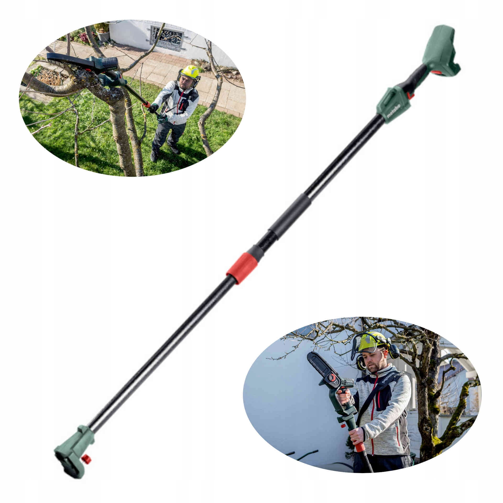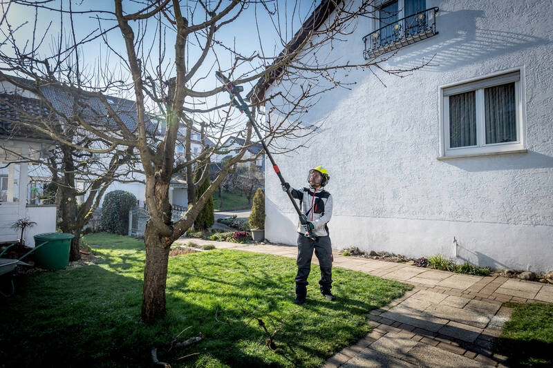 - Połączenie wysięgnika teleskopowego MS i akumulatorowej pilarki do drewna pozwala używać urządzenia jako podkrzesywarki do pielęgnacji drzew
