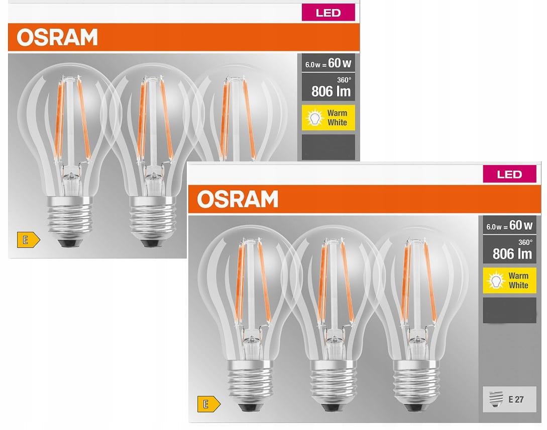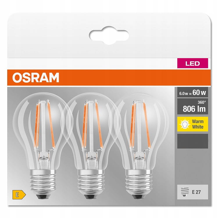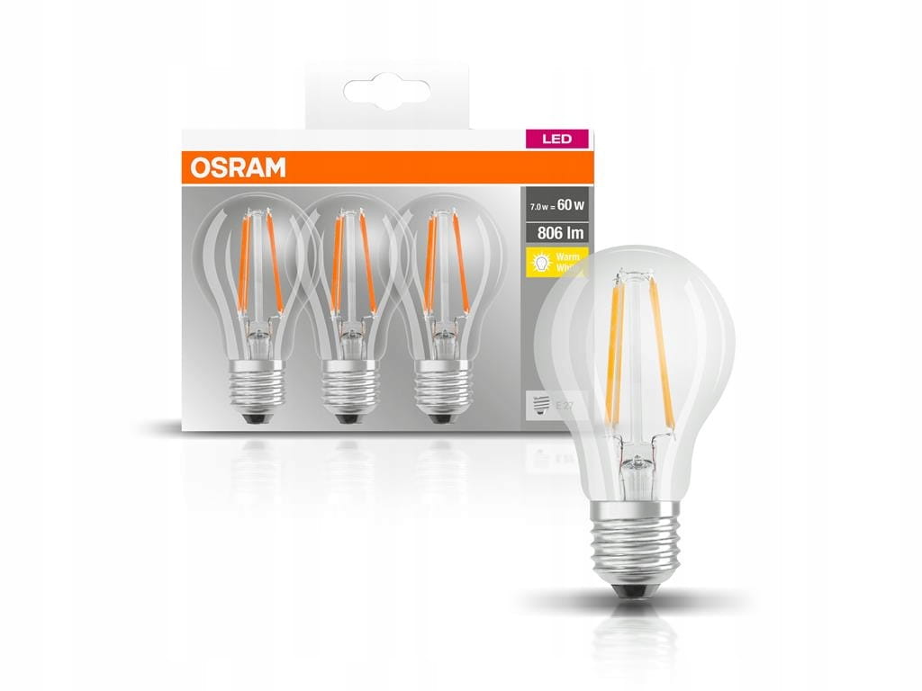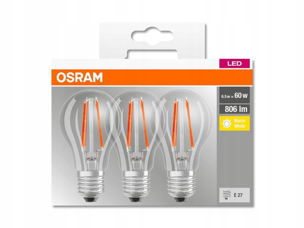 Żarówka LED E27 6,5W(60W) ciepła 2700K Osram 3 szt